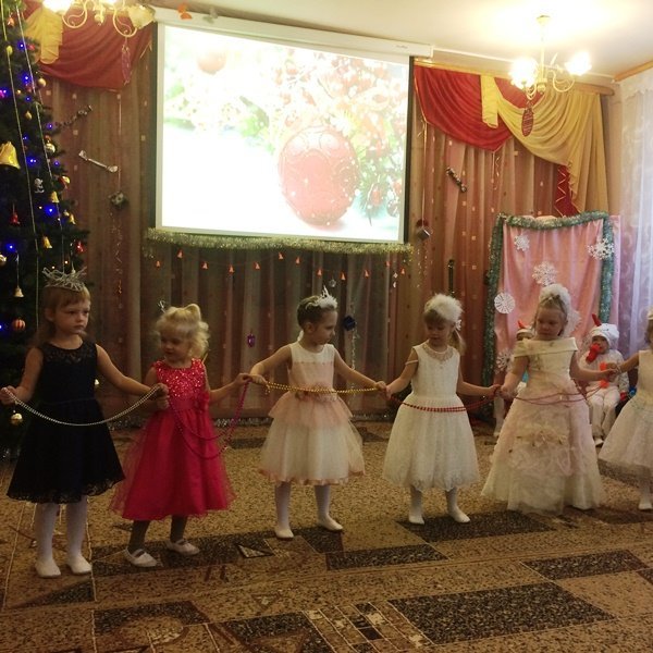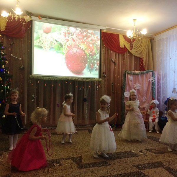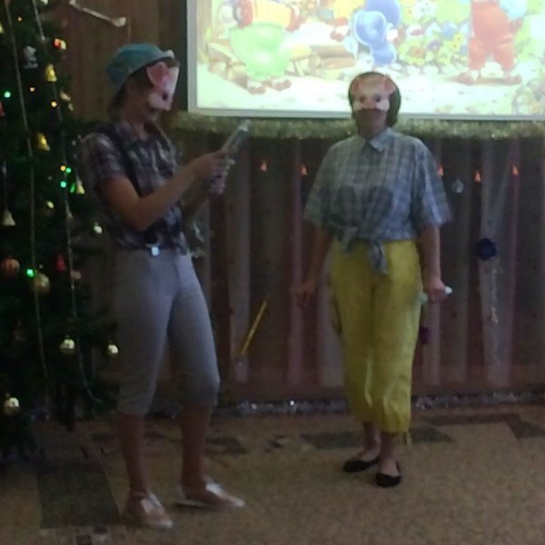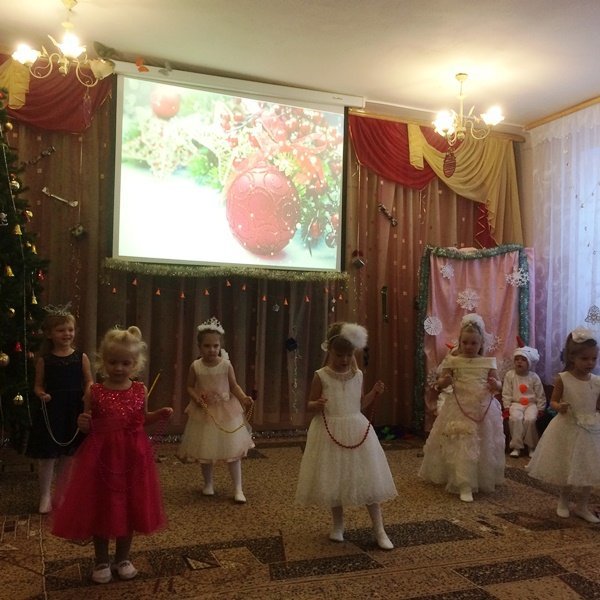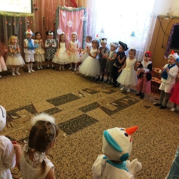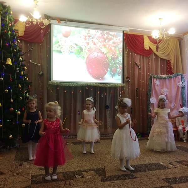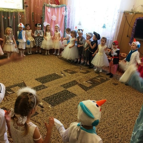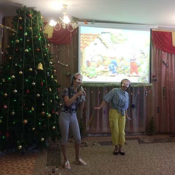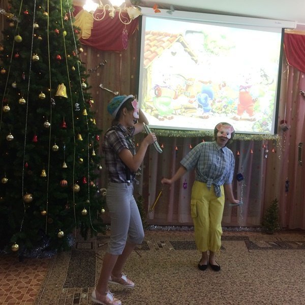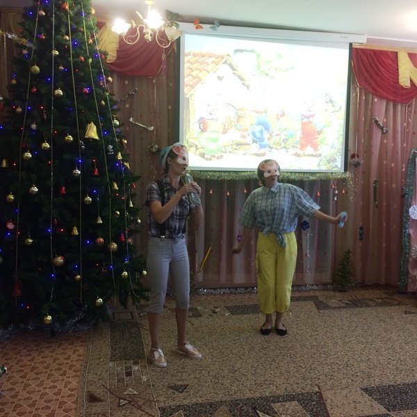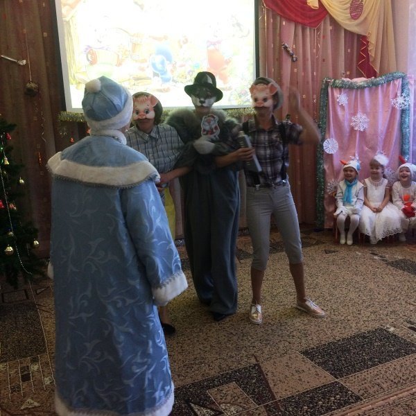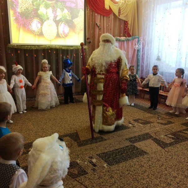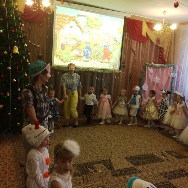 Весёлый утренник подарил гостям много интересного: танец снеговиков и бусинок, весёлые хороводом и песни. Не обошлось и без сюрпризов: гости-поросята забыли выполнить поручение Деда Мороза и их чуть не съел злой волк. Но поросятам помогли ребята, которые прогнали волка и позвали Деда Мороза.